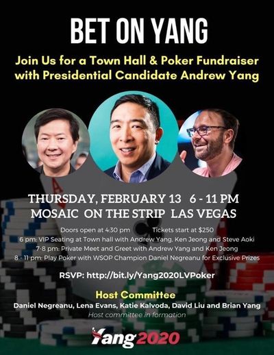 Andrew Yang will host a celebrity poker fundraiser at The Mosaic On The Strip Theater Feb 13th